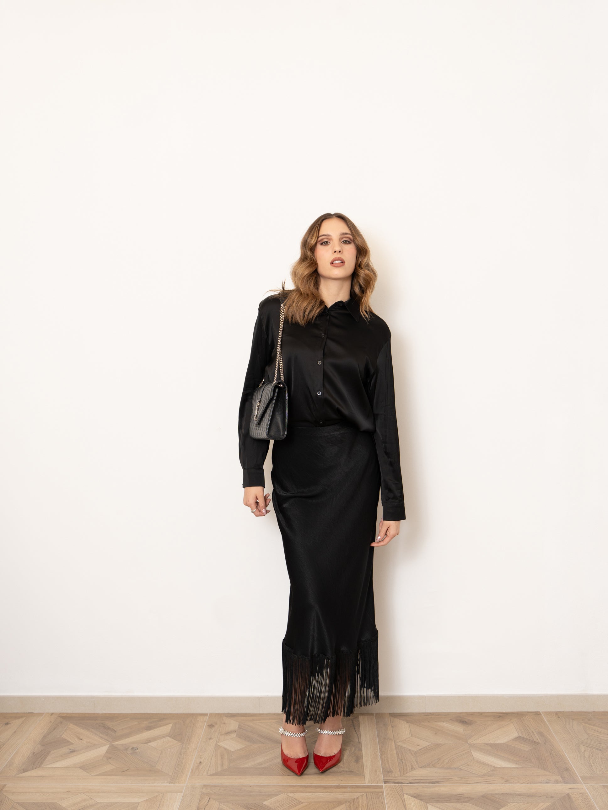 Camicia in satin con bottoni davanti