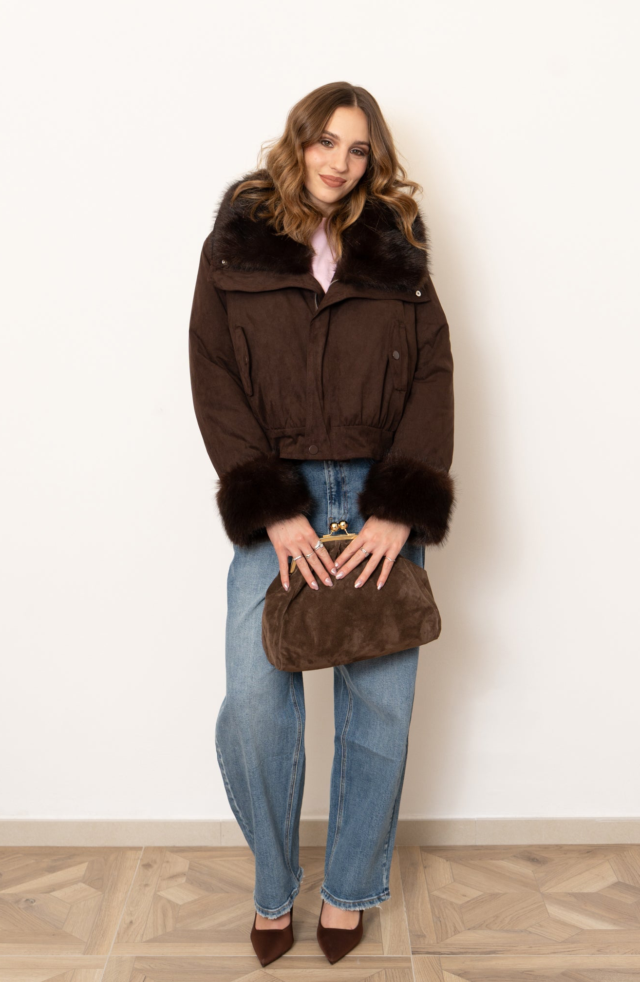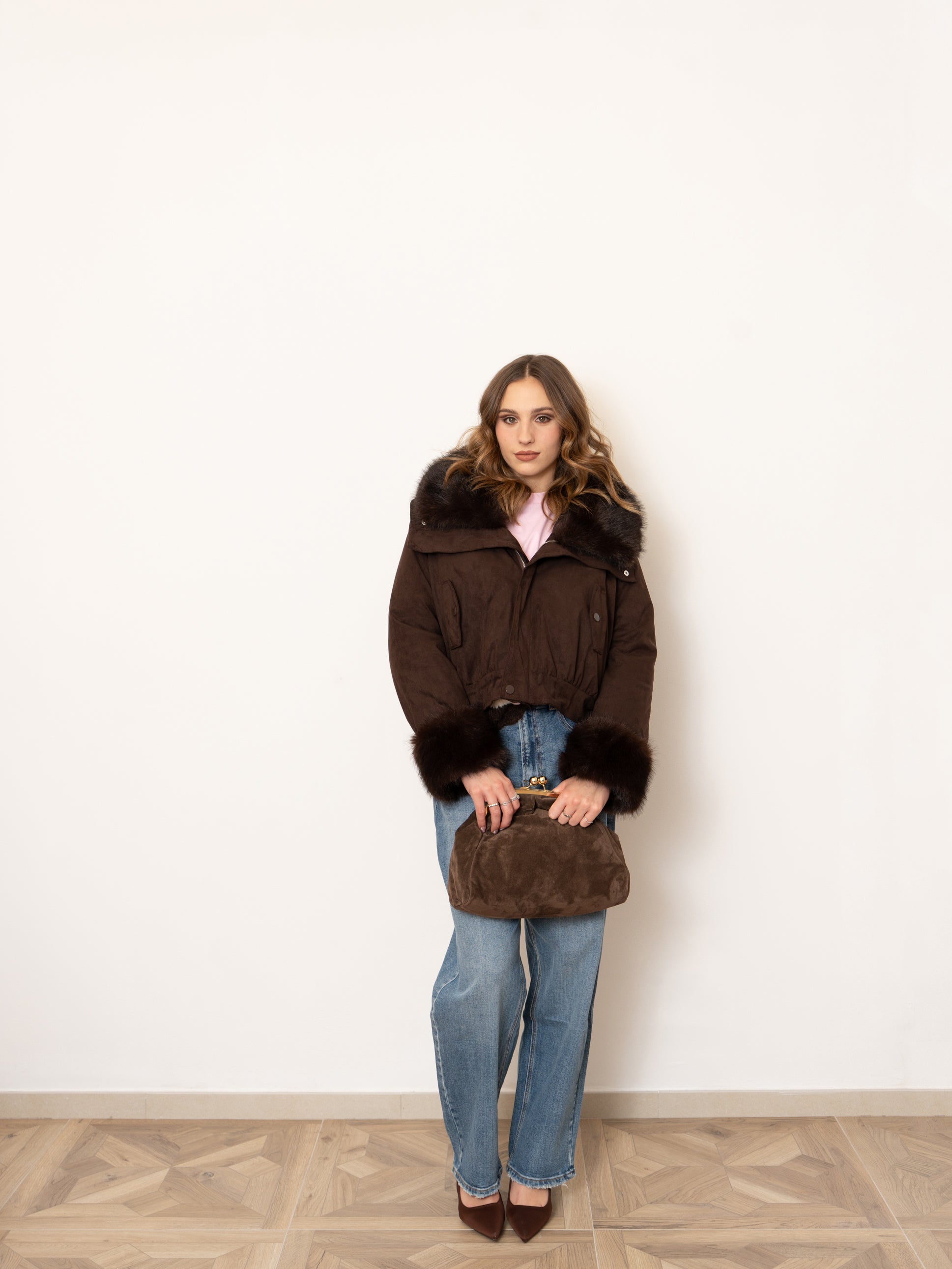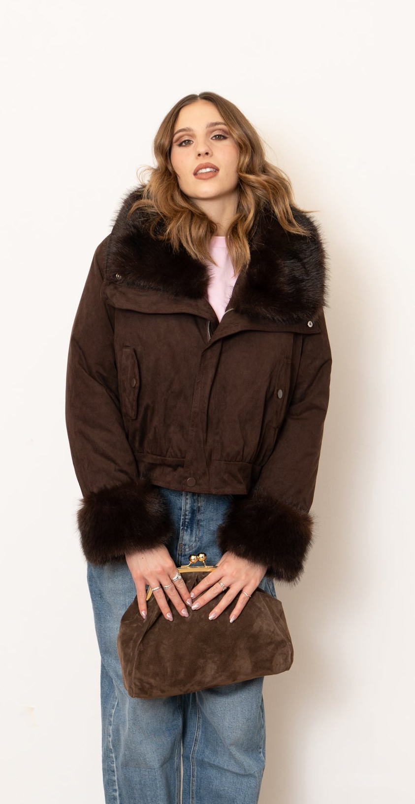 Giubbino imbottito con collo e polsini in ecofur